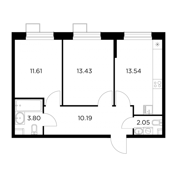 Двухкомнатные квартиры стандарта евро мало чем отличаются от однокомнатных квартир. Санузел совмещенный, спальни от 10,3 до 12,6 кв.м. Разве что кухни-гостиные побольше, до 19 кв.м. А вот классические «двушки» уже лучше приспособлены для жизни небольшой семьи. Они радуют раздельным санузлом (с раковиной для умывания в обоих помещениях), просторными прихожими до 8,5 кв.м., кухней более 10 кв.м. и спальными помещениями от 12,6 до 15,2 кв.м. Конечно, во всех квартирах запроектированы лоджии.