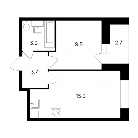 Планировка однокомнатной квартиры 33,1
