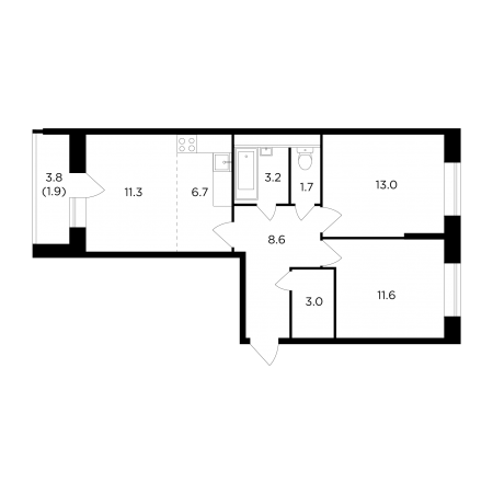 Планировка трехкомнатной квартиры евро 58,1
