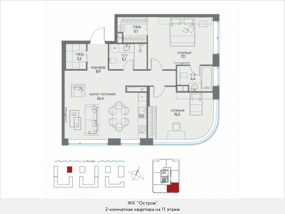 Остров – это когда вокруг вода. А жилой комплекс «Остров» - это когда вокруг идеальная экология, совершенное благоустройство и максимальный уровень комфорта классов «премиум» и «де люкс». Ну, и вода, конечно, тоже, ведь заповедная Мневниковская пойма благодаря ряду искусственных водных сооружений стала островом в прямом географическом смысле слова. Это московский остров, омываемый Москвой-рекой. И прописка у островитян тоже московская.