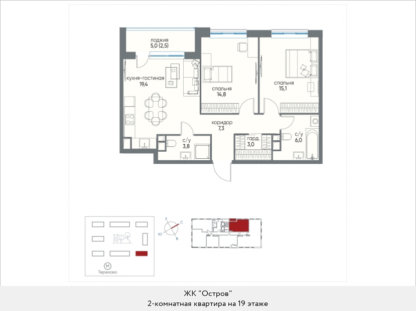 План 19 этажа 7 квартала корпуса 2 секции 1