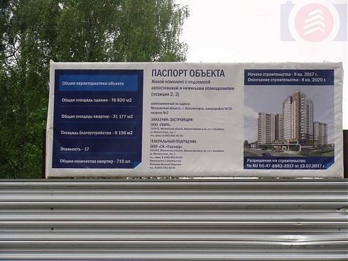 Строительство на участке с кадастровым номером 50:11:0010108:14 в Красногорске началось в 2014 году. Проект предусматривал возведение на территории площадью 12 775 кв. м пяти семнадцатиэтажных зданий бизнес-класса. Дома первой очереди, №№ 1 и 5, уже построены и сданы в эксплуатацию.