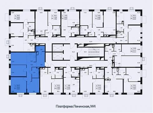 Четырехкомнатные квартиры спроектированы в формате евро. Комбинированные входные зоны общей площадью от 7,81 до 14,92 кв.м., два санузла с площадью помещений от 1,63 до 4,46 кв.м., кухни - гостиные площадью от 16,31 до 20,83 кв.м., спальни площадью от 10,31 до 17,66 кв.м. Квартиры угловые или двухсторонние, в некоторых комнатах два окна. Встречается кладовая площадью 8,30 кв.м.