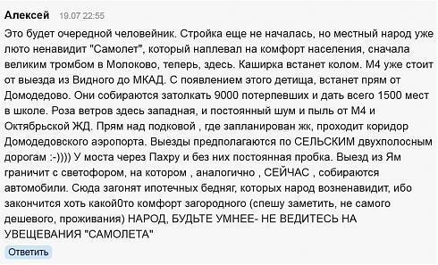 Пользователи Интернета, наряду с хвалебными отзывами, порой высказывают и негативное мнение о новостройке.