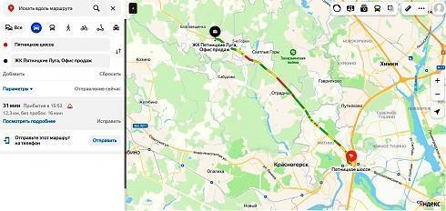 Но пока что Пятницкое шоссе в районе новостройки – это одноколейная дорога с массой скоростных ограничений, движение по ней бывает нередко крайне медленным.
