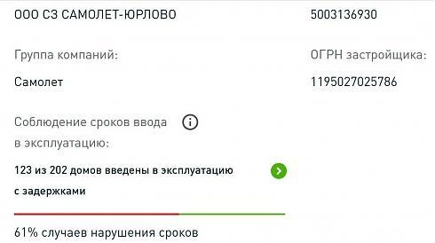 Строительство на земельных участках с кадастровыми номерами 50:09:0070423:3603 и 50:09:0070423:3604 ведет ООО «Специализированный застройщик «Самолет-Юрлово». Компания создана в декабре 2019 года, за три года, предшествующие подаче проектной декларации компания никакого жилищного строительства не вела. Земля находится в собственности у застройщика.