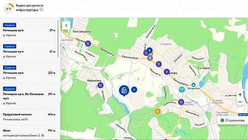 Здесь отражены инфраструктура и транспортная доступность, обозначено окружение, подчеркнуты основные преимущества проекта.