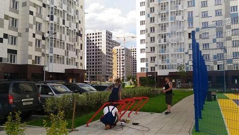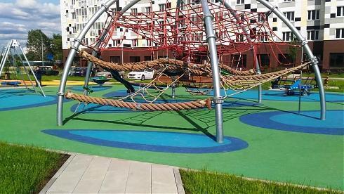 Еще важный момент. Если в первой очереди, представляющей собой три изящных, стройных и кажущихся легкими, как паруса, белых здания, поставленных буквой «П», на свободной стороне которой уже через полгода появится многоэтажная парковка, на уровне земли уже разбит двор с двумя детскими и спортивной площадками, то домовые дворы второй и третьей очереди будут подняты на высоту в три с половиной метра и ограждены забором. Это так называемые безопасные дворы: те же детские площадки, газоны и деревья, но строго пешеходная зона.