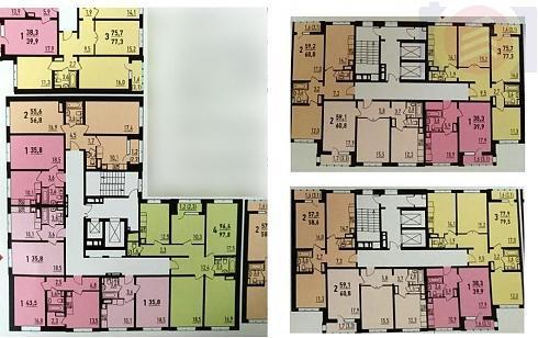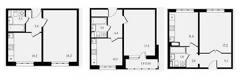 В корпусе 1 представлен полный планировочный ряд – от однушек до четырехкомнатных квартир. В корпусе 2 есть только 1- и 2-комнатные квартиры.