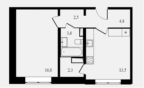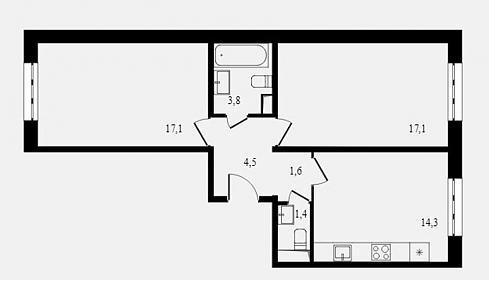 В целом, выбор планировок не такой уж маленький. несмотря на то что речь идет о панельном строительстве. Вот, например, такие предлагаются однушки.