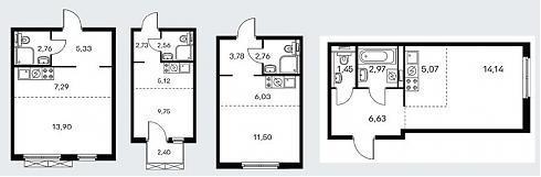 Если смотреть планировки на сайте объекта, может показаться, что их несколько сотен, и все разные. На самом деле многие из квартир похожи как близнецы, различаясь лишь площадями помещений. И все же выбор ПИК предлагает достойный. Вот, например, варианты студий. В одной из них нашлось даже место для раздельного санузла!