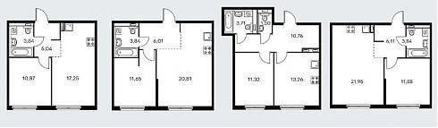 Однокомнатных также вполне приличный набор, от компактных до вполне просторных. Есть как «традиционные» однушки, так и евро-двушки, с гардеробной комнатой или без таковой. В некоторых квартирах присутствуют раздельные санузлы.