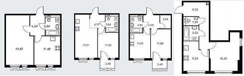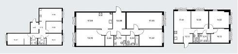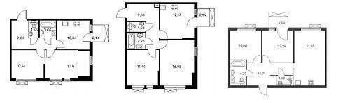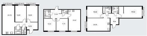 Трешки также представлены всеми возможными вариациями, включая и евро-четырехкомнатные квартиры.