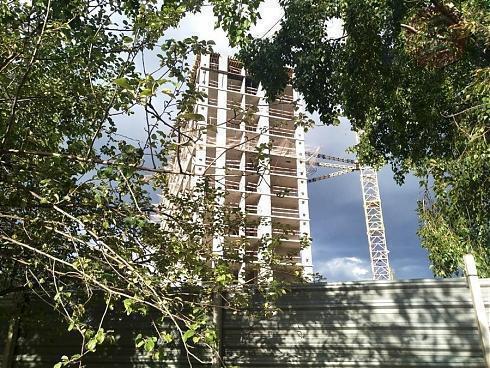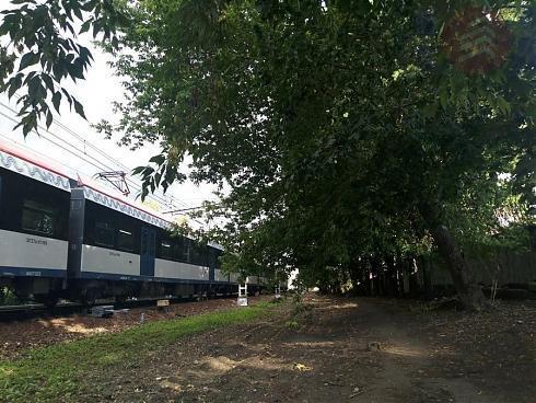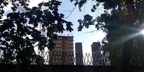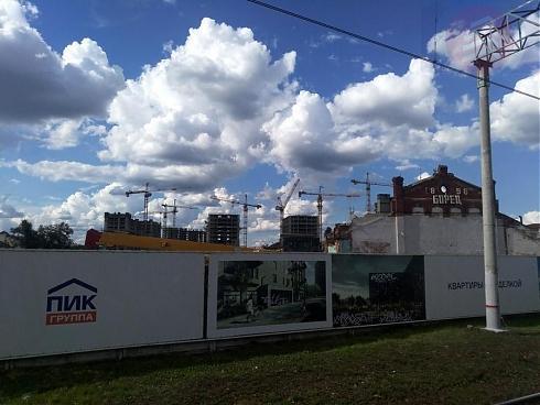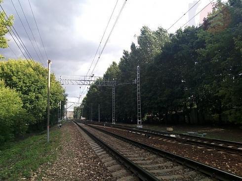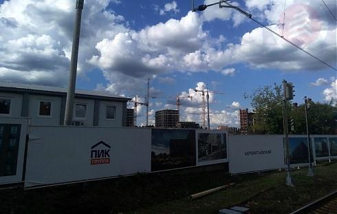 Между забором стройплощадки и рельсами всего метров двадцать. Хорошо, что Застройщик решил оставить вдоль ограждения взрослые высокие деревья, они послужат своего рода «защитой» жилого квартала от шума поездов.