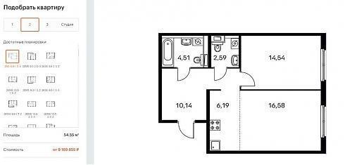 Двухкомнатные на любой вкус: линейные, угловые, распашные. Санузлы во всех двушках раздельные. Правда, комнаты зачастую довольно скромных площадей, от 10,5 до 13 квадратов.