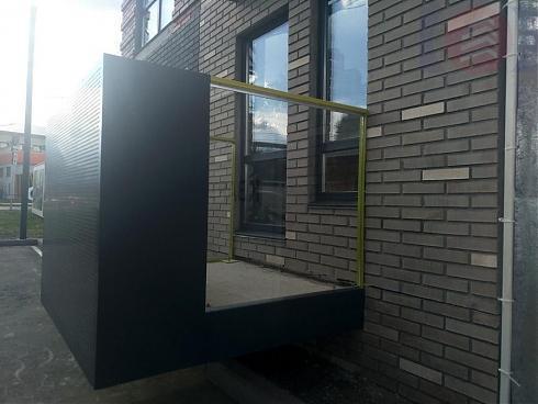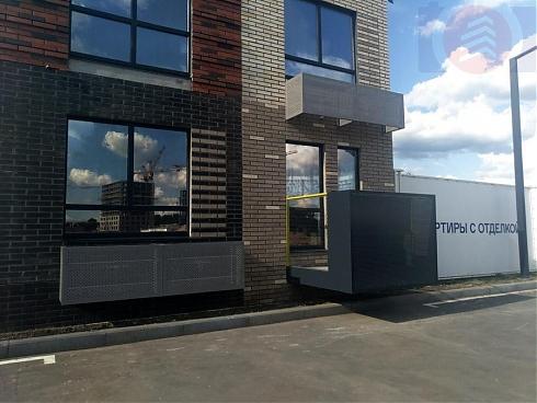 Рядом с офисным зданием установлена «демонстрационная стена», на примере которой потенциальный покупатель может рассмотреть фасады, окна и балконы будущих домов.