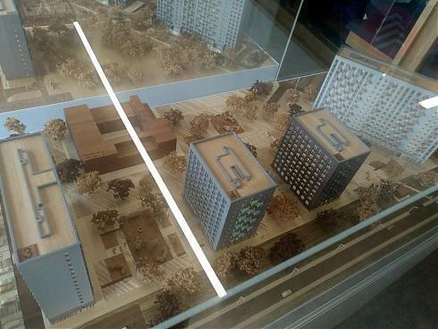Школа и поликлиника – это темно-коричневые прямоугольники между домами. Двухэтажные пристройки к корпусам – детские садики. Два темно-коричневых строения с правой стороны макета – это здания завода «Борец». Они являются «исторически ценными градоформирующими объектами» и будут отреставрированы, чтобы впоследствии войти в состав бизнес-парка на окраине ЖК. Эти постройки, кстати, «отгородят» жилые дома от ж/д платформы Станколит, так что окна квартир выходить прямо на железнодорожную ветку не будут.