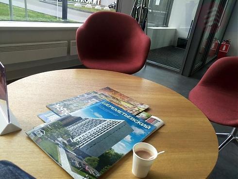 В самом офисе можно получить буклеты и довольно познавательную газету с рассказом о районе, а также взглянуть на макет будущего квартала.