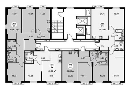 Количество квартир на этаже – от 4 до 12. Самым «населенным» является корпус 2. Отметим, что лифтов в секции всего два, даже при изрядном числе квартир. Мне кажется, что в «часы пик» это может создавать затруднения для жильцов.