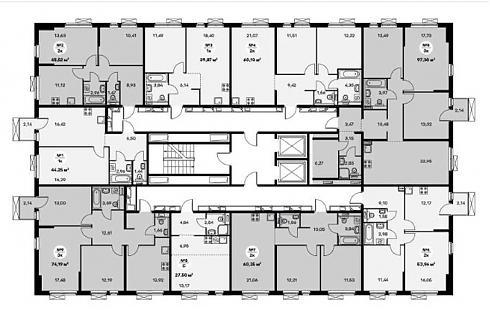 - Корпус №2: 12 этажей, 1 секция, 132 квартиры, 49 кладовых.