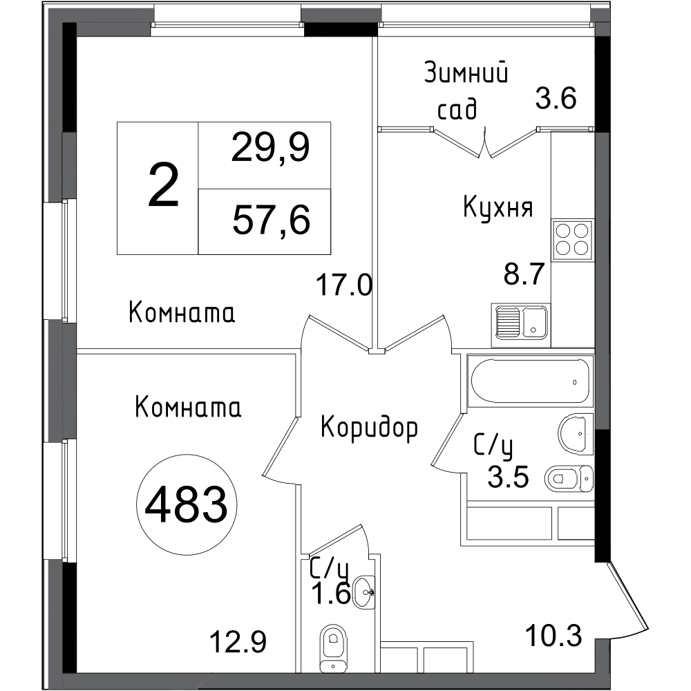 В некоторых двухкомнатных гостиная отделена от кухни, в других – эти два помещения объединены. Учитывая, что внутренние стены жильцы могут возводить по собственному желанию, эти планировки можно считать практически идентичными. В гостиной любой двухкомнатной квартиры по два окна, в прихожей – два санузла: «основной» и «гостевой».