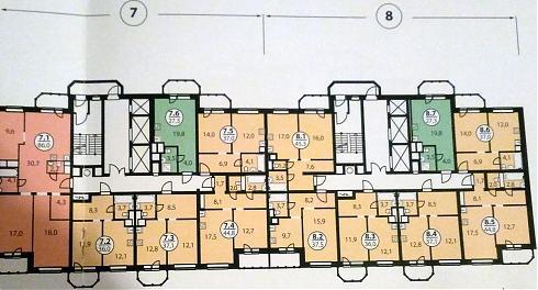 Но обо всем по порядку. Как я уже говорила, ЖК состоит из одного 8-секционного дома, пять из которых уже сданы в эксплуатацию и прошли обмеры БТИ, но в них в продаже (по состоянию на конец июня 2017) есть по паре десятков одно-, двух- и трехкомнатных. Активно строится вторая очередь – секции 6, 7 и 8, свободных квартир в них значительно больше, около трехсот.