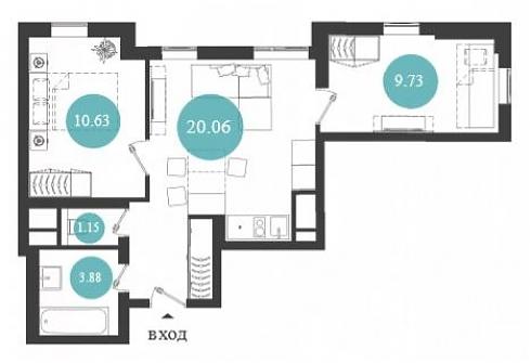 Перейдем к двухкомнатным, по крайней мере, здесь их так называют. Их площадь 38 и 46 метров. В первом случае вы имеете кухню 14 кв.м, из которой две двери ведут в две спальни 9 и 11 метров. В большой двухкомнатной квартире площадью 46 квадратных метров кухня-столовая занимает 20 кв.м., из нее ведут двери в две спальни площадью по 10 кв.м, но зато кроме санузла есть еще и кладовка.