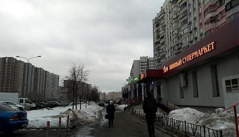 В жилых домах рядом с новостройкой – масса сетевых супермаркетов, аптек, салонов красоты, отделений банков и цветочных палаток.