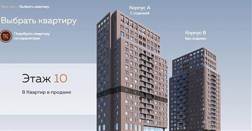 Официальный сайт ЖК Twin House (https://zhk-twinhouse.ru/) вполне информативный: тут есть и информация об объекте и застройщике, и проектная документация, и фотографии со стройплощадки. Выбор квартир реализован довольно удобно: можно воспользоваться поиском по корпусу и этажу, либо инструментом подбора по параметрам. В первом случае вашему вниманию предстанет интерактивный план выбранного этажа: наведя курсор мыши на квартиру, можно увидеть ее стоимость и метраж.