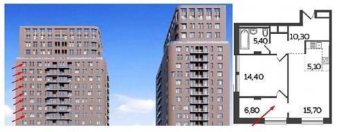 На этаже расположено 8 квартир, причем почти все – евро-формата, то есть с объединенной кухней-гостиной. Исключение – однокомнатная, в которой кухня имеет отдельное окно и, следовательно, может быть отделена стеной от комнаты. В этой квартире нашлось даже место для гардеробной.