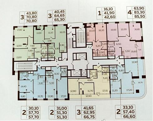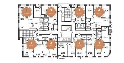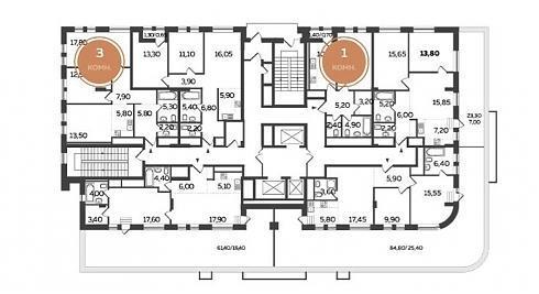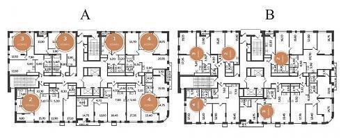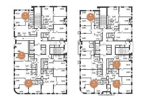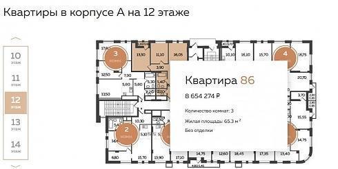 Вот какие планировки, например, предлагаются на этажах в корпусе А (с отделкой):