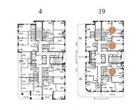 На 4 и 19 этажах корпуса В также присутствуют террасы.