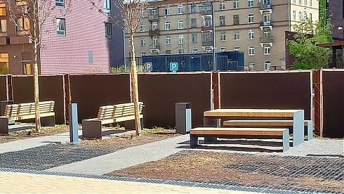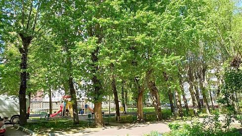 Зеленая зона более чем скромная - небольшой сквер в старом московском дворике, на который «наступила» новостройка.