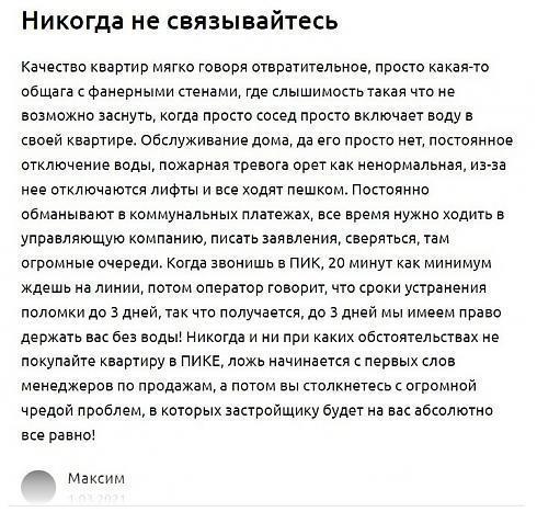 Впрочем, некоторые покупатели квартир у ПИКа отмечают некоторые недостатки в отделке.