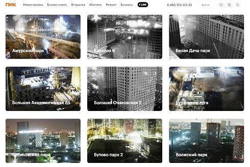 В сайт встроен удобный механизм поиска квартир по параметрам. Есть возможность наблюдать за ходом строительства в реальном времени. Для этого нужно открыть вкладку «live» в шапке главной страницы сайта.