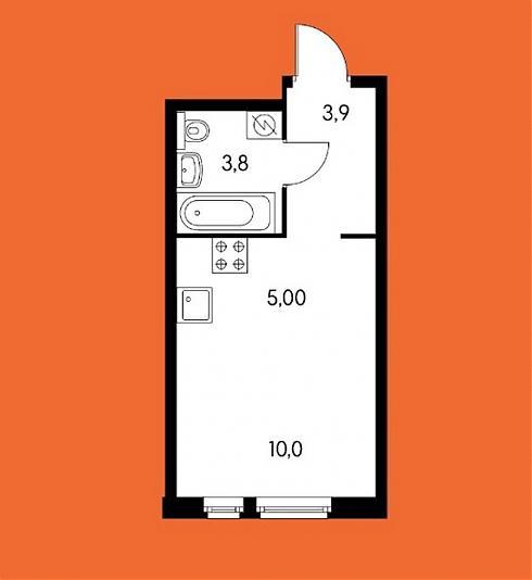 Единственная в наличии студия, площадью 22.7 квадратов.