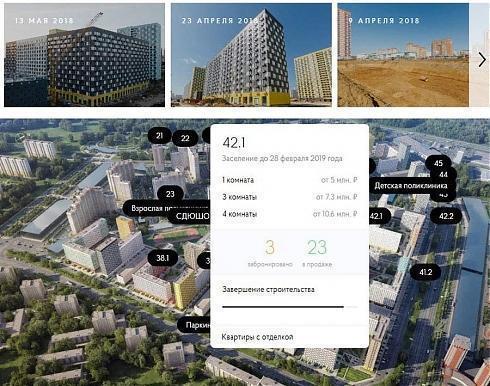 В целом же, вся информация о Комплексе структурирована и легко находится. Можно посмотреть фото со стройплощадки, почитать проектную документацию, ознакомиться с генпланом и, конечно, подобрать квартиру.