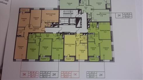 Общий метраж квартиры на 6-м этаже, которая могла бы понравиться моим знакомым - 56,8 квадратов – это вместе с лоджией. На схемах в буклетах, которые мы изучали в офисе, условная планировка квартир все же есть. Так, что, если говорить о двушке, которую предлагается рассмотреть – комнаты получаются 16,8 и 16,4 кв. м. Кухня – 9,2 квадрата. Стоимость, правда, очень привлекательна.