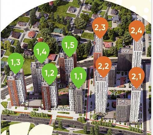 Под застройку выделен земельный участок площадью 12 гектаров. На нем предполагается возвести 14 корпусов комфорт-класса. Строительство ведется по монолитной технологии, класс энергоэффективности зданий «А» (очень высокий).