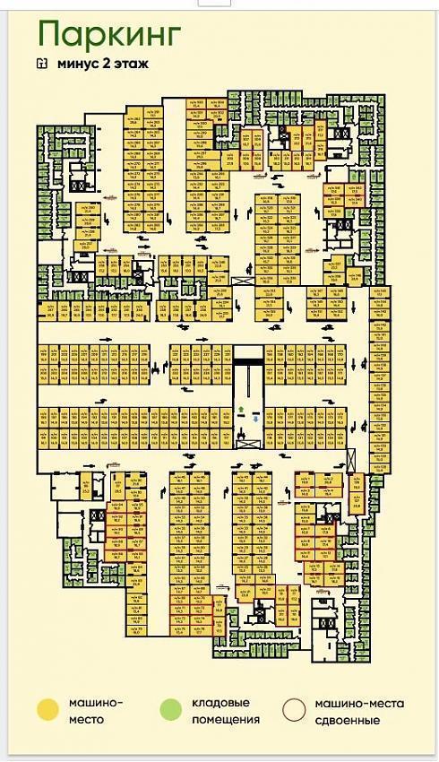 В стилобатной части устроят автопарковки и кладовые для хранения личных вещей. Площадь машиномест от 13,3 до 27,4кв.м., кладовых от 2,4 до 20,0 кв.м. Кроме того, на территории обустроят более 150 гостевых парковочных мест для временного хранения автомобилей.