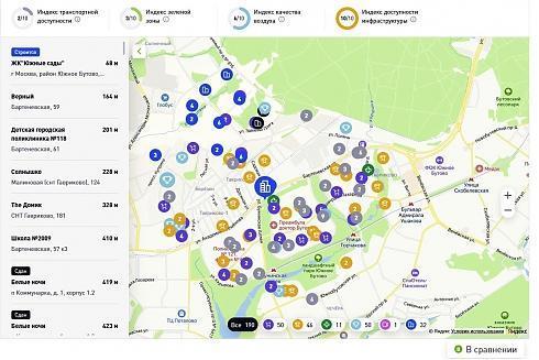 Есть ссылка на данные аэрофотосъемки, доступна опция «вид из окна» для каждой квартиры.