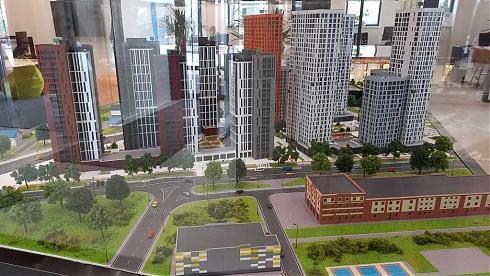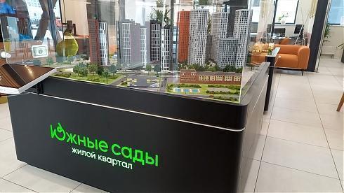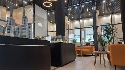 В холле можно познакомиться с макетом новостройки, а в специальном помещении пообщаться с менеджером по продажам.