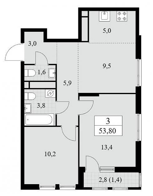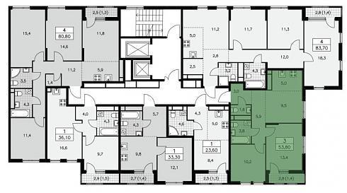 Планировка трехкомнатной квартиры 53,8