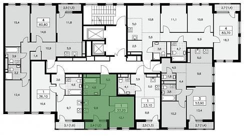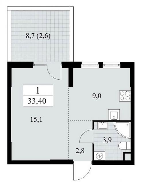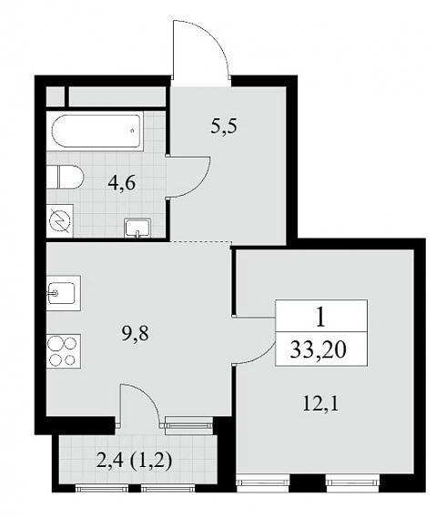 Планировка однокомнатной квартиры 33,2