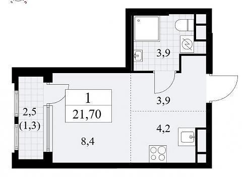 Планировка студии 21,7