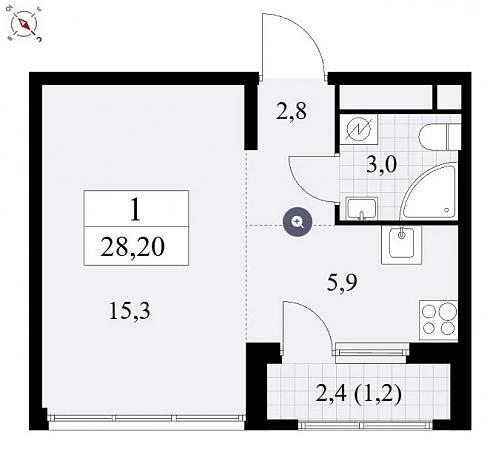 Планировка студии 28,2
