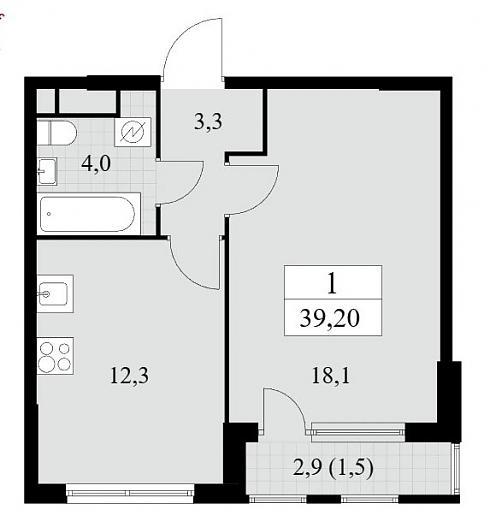 Планировка однокомнатной квартиры 39,2