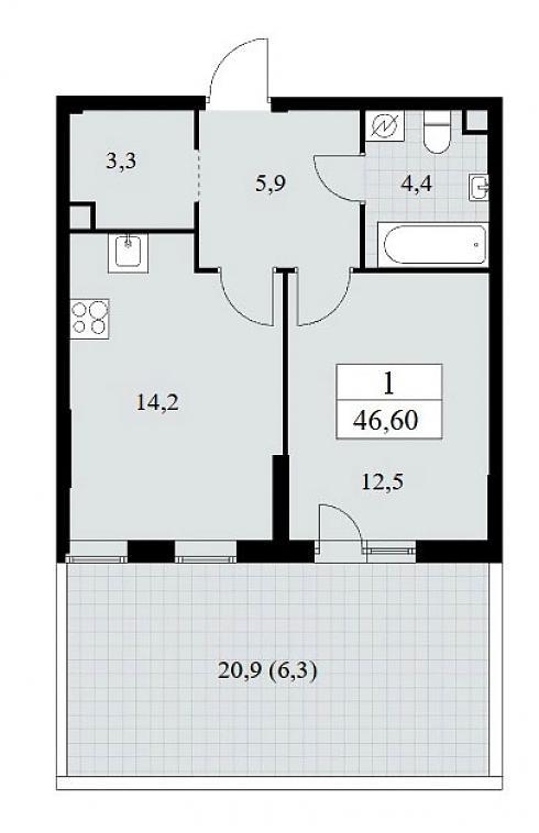Планировка однокомнатной квартиры 46,6