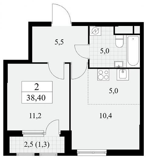 Планировка двухкомнатной квартиры 38,4