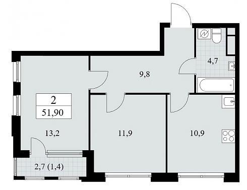 Планировка двухкомнатной квартиры 51,9